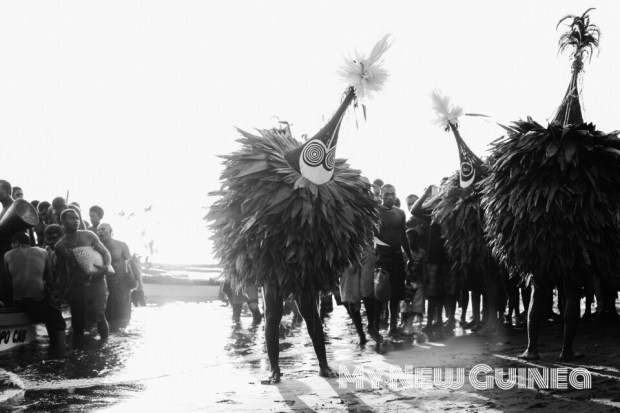I was very cautious as I made my way around the crowd, trying to get a good clear shot of the Tubuans disembarking from the canoes onto the beach. It is strongly forbidden for a female to be close to a Tubuan, this is one of the many cultural taboos in East New Britain, along with making noise or imitating the way they dance.